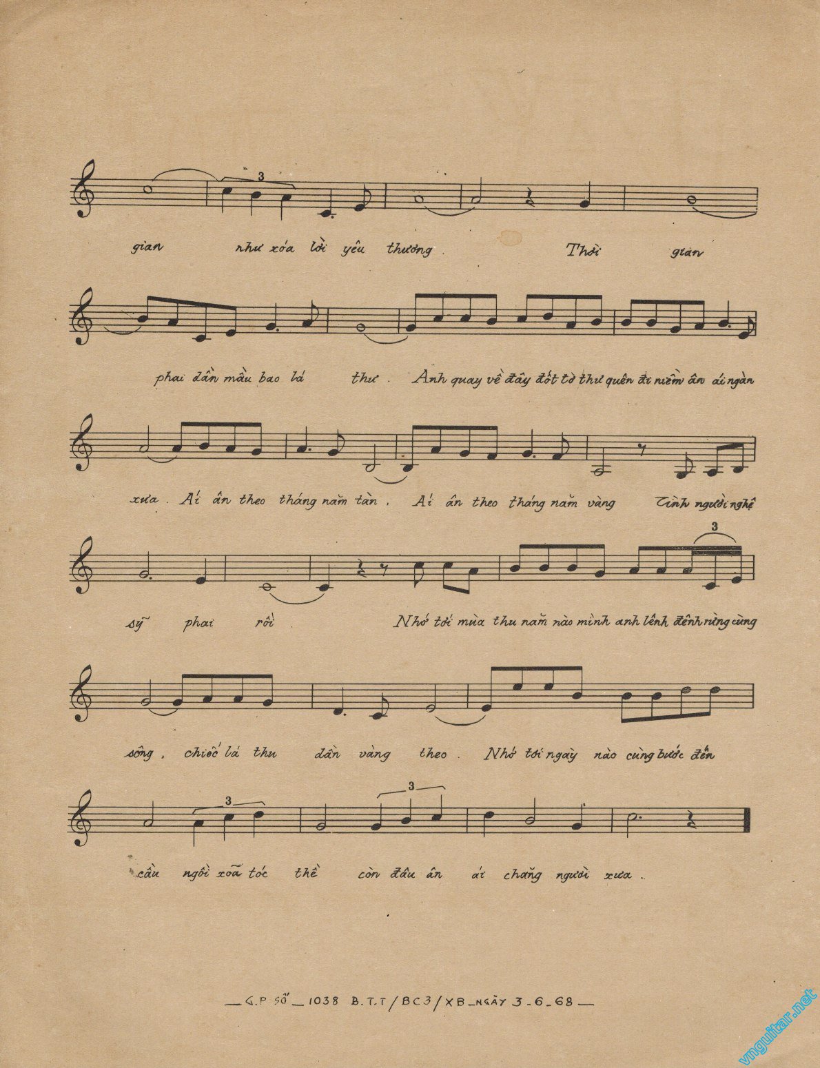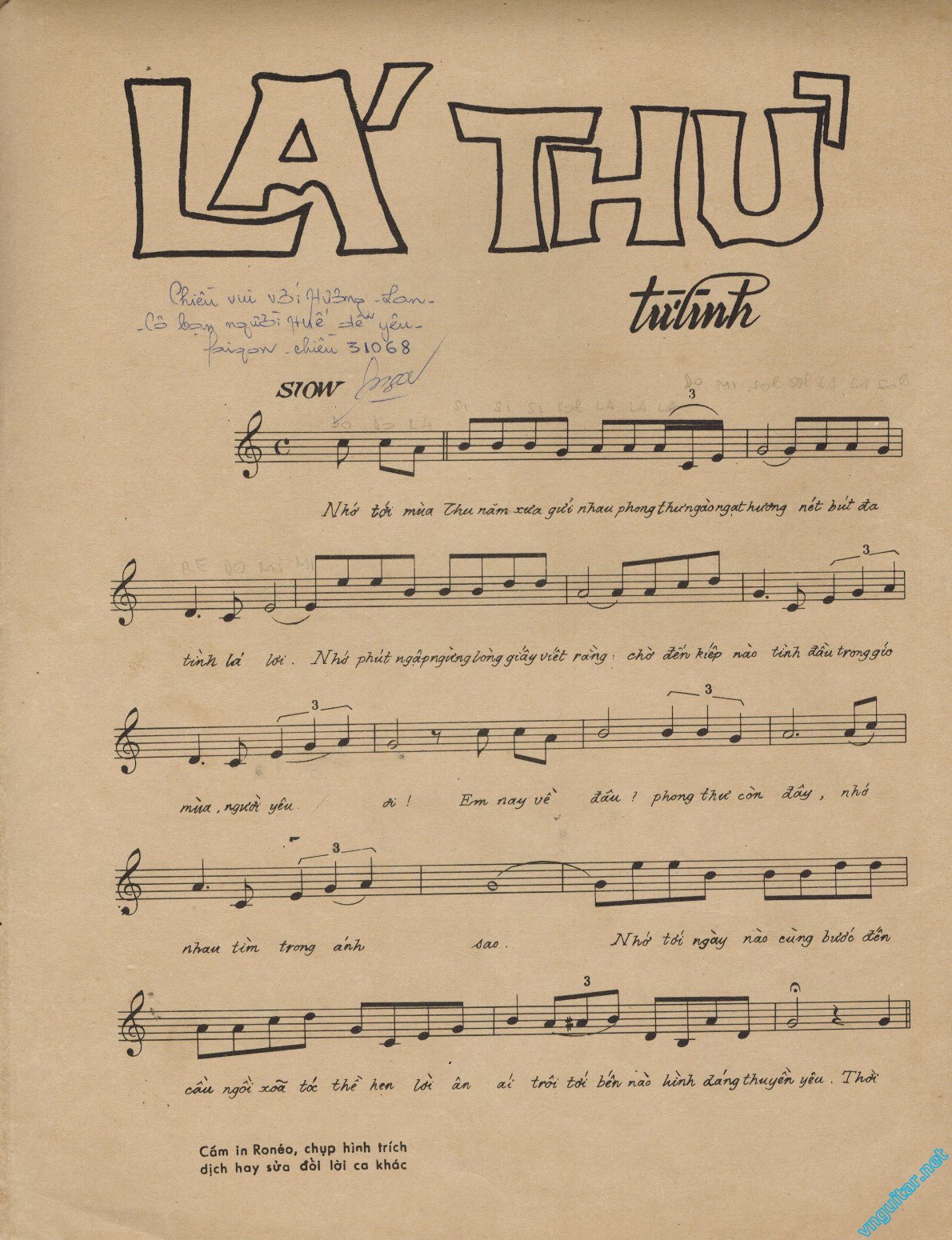 Sheet: Nốt nhạc và lời Lá thư - Từ Linh (Tờ nhạc xưa bản in 1968)
